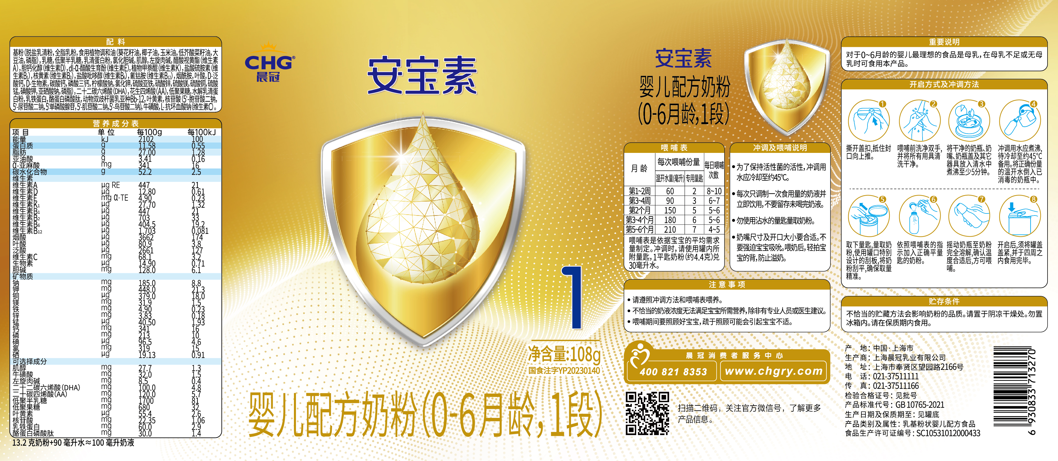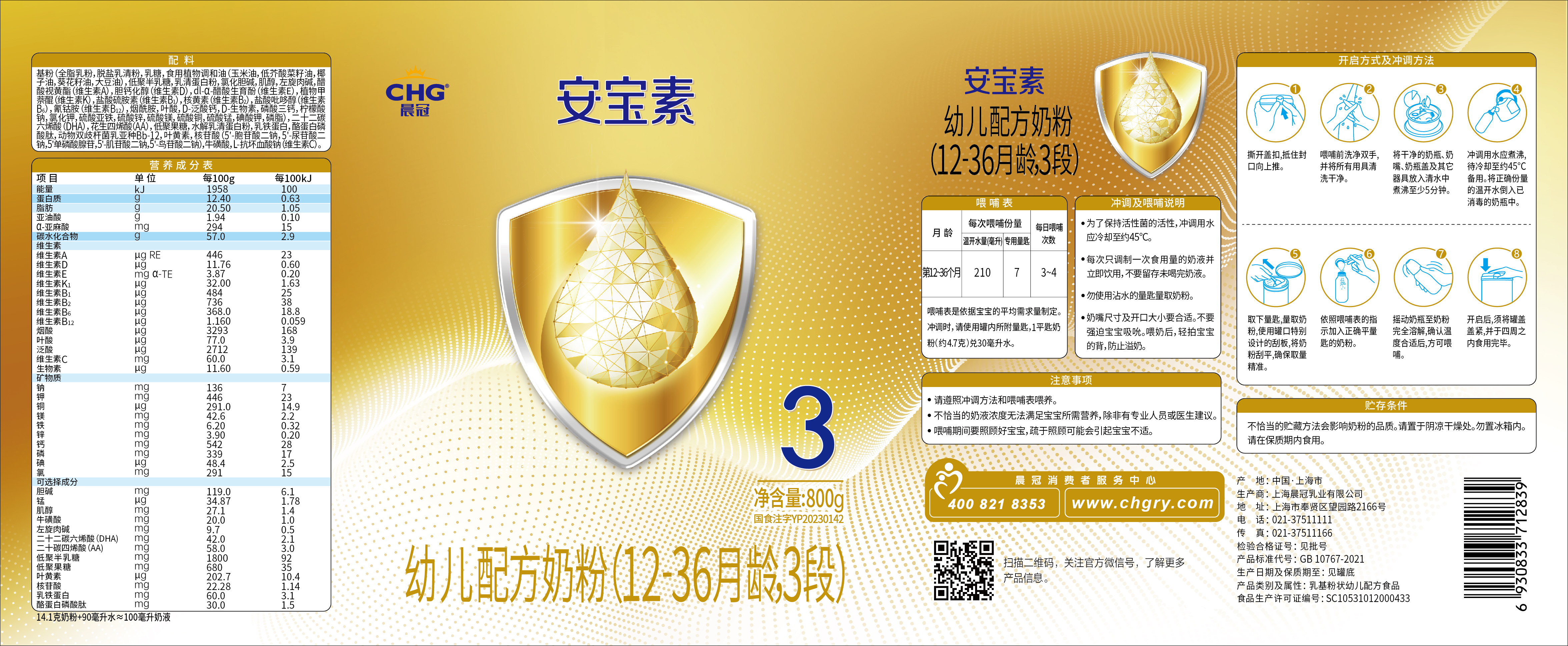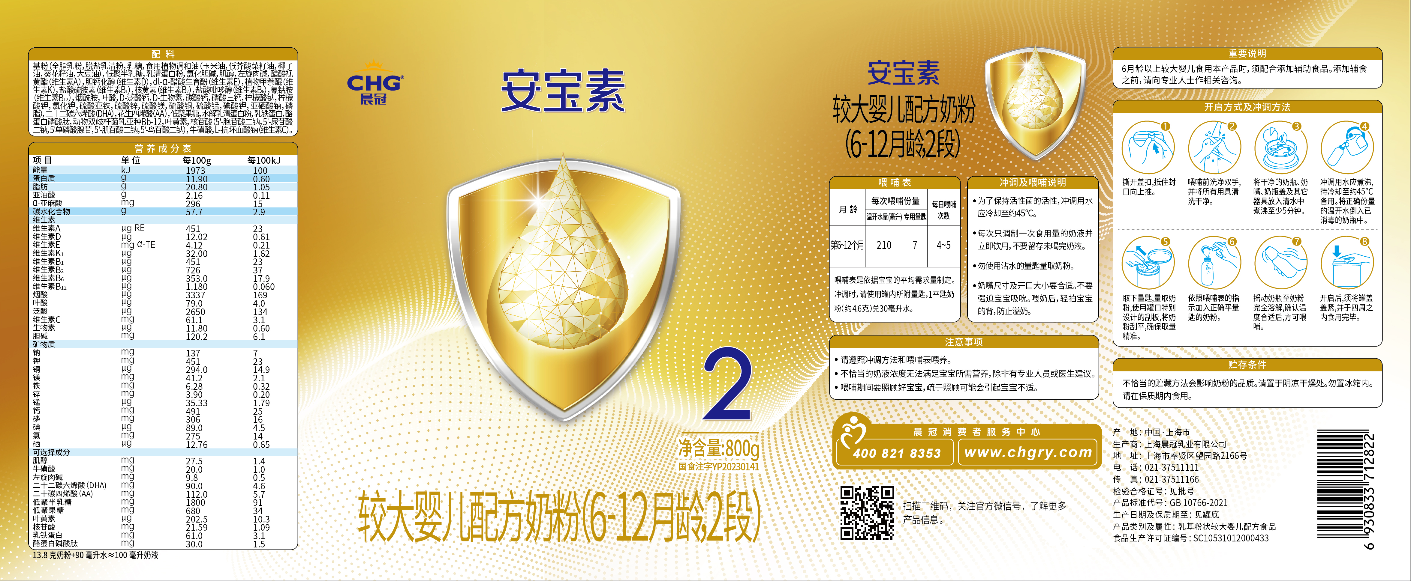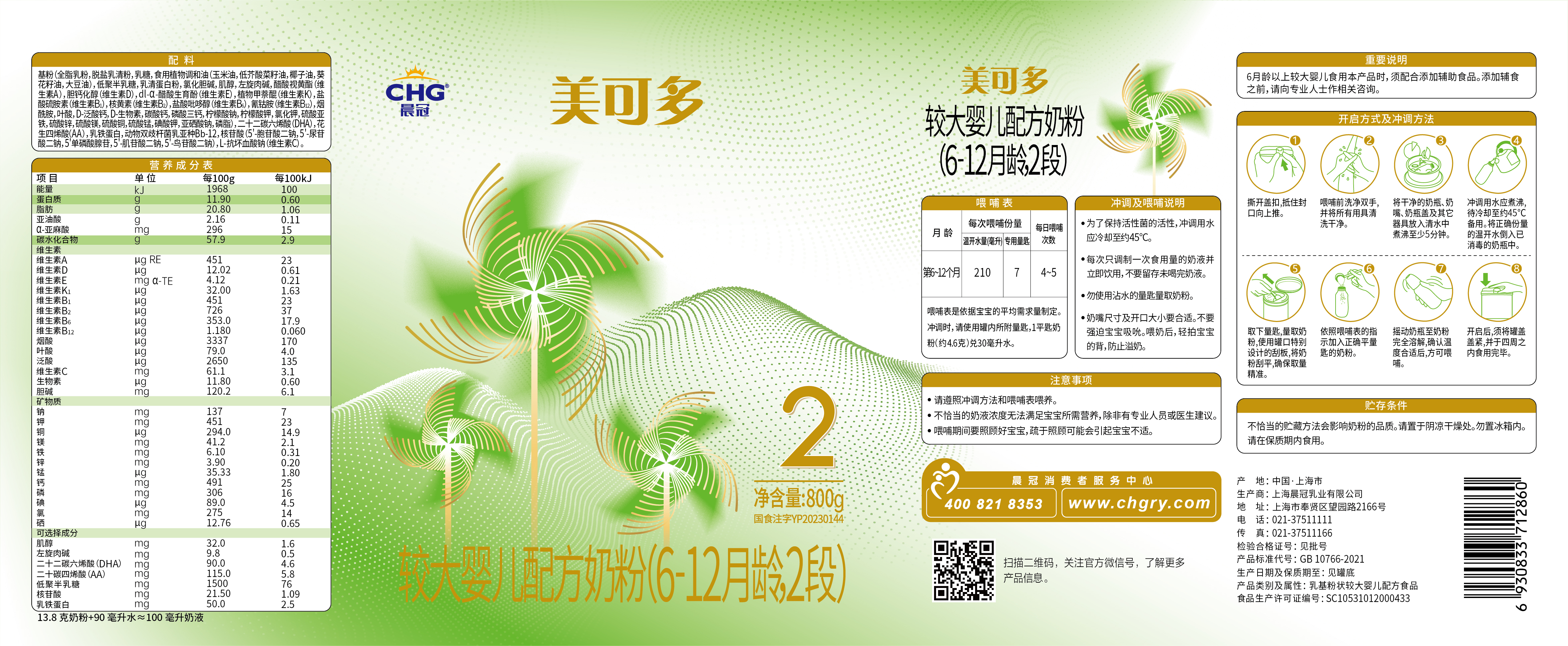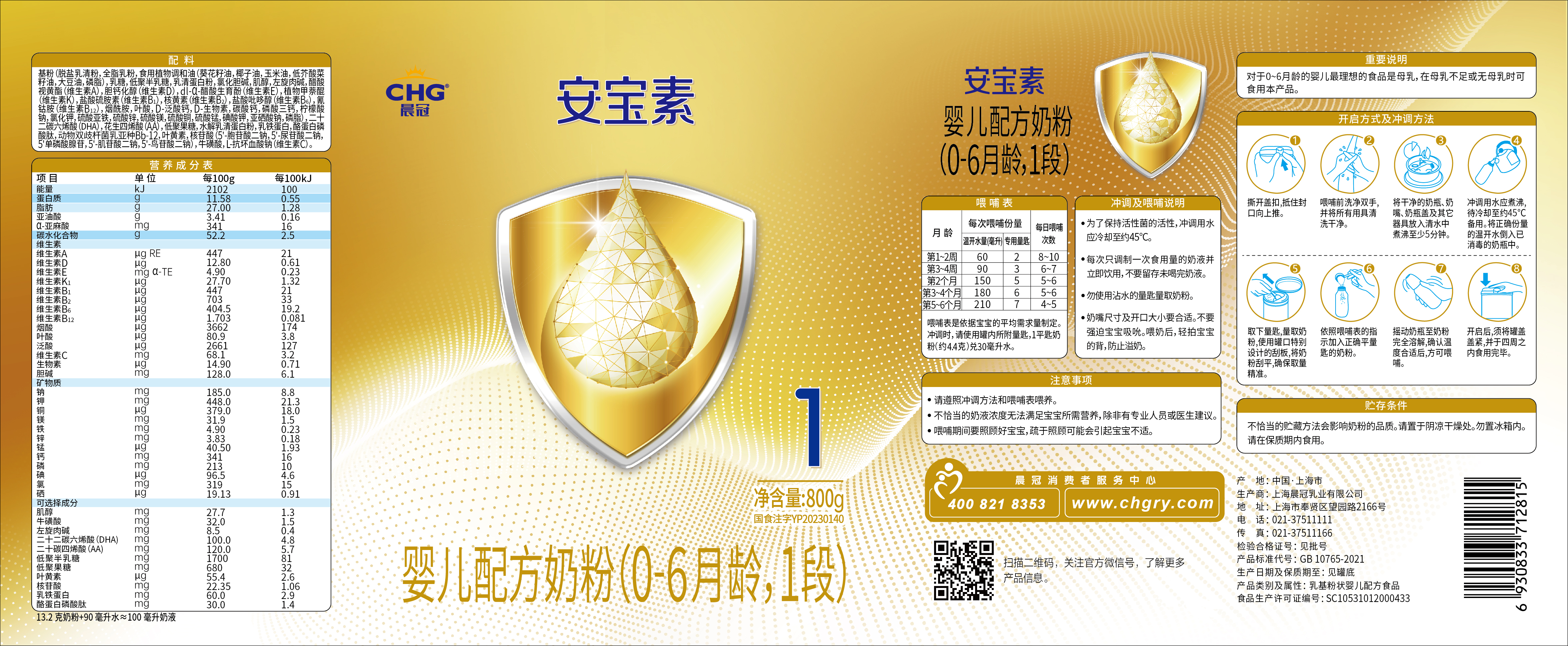 根据《中华人民共和国食品安全法》《上海市婴幼儿配方乳粉生产企业原料及标签备案管理办法(试行)》等规定,上海晨冠乳业有限公司提交的标签备案材料符合要求,我局予以备案。 我局对上海晨冠乳业有限公司婴幼儿配方乳粉产品标签备案信息予以公示。备案人对所提交的材料的真实性、完整性、可溯源性负责。 附件:上海晨冠乳业有限公司婴幼儿配方乳粉产品标签信息表 |