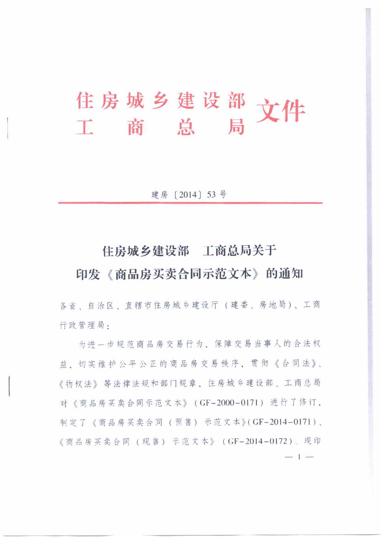 商品房买卖(预售)合同(GF-2014-0171)、商品房买卖(现售)合同(GF-2014-0172)